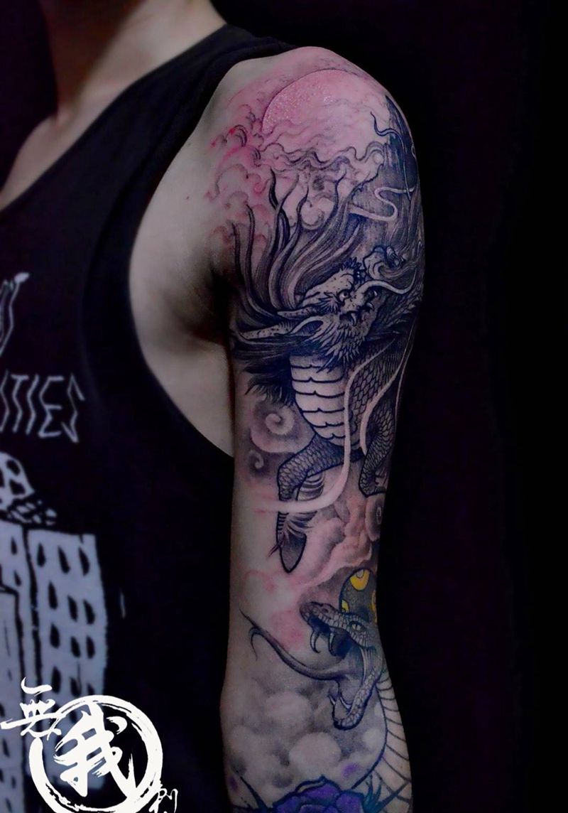• T云龙九郎纹身图片_背部老传统云龙九郎纹身图案