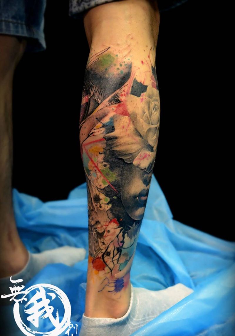 当前位置: 首页 >广东省广州市纹身店-广州纹身無我刺青tattoo纹身图案>欧美包小腿纹身图片_欧美写实成品手稿脚部腿部纹身图案