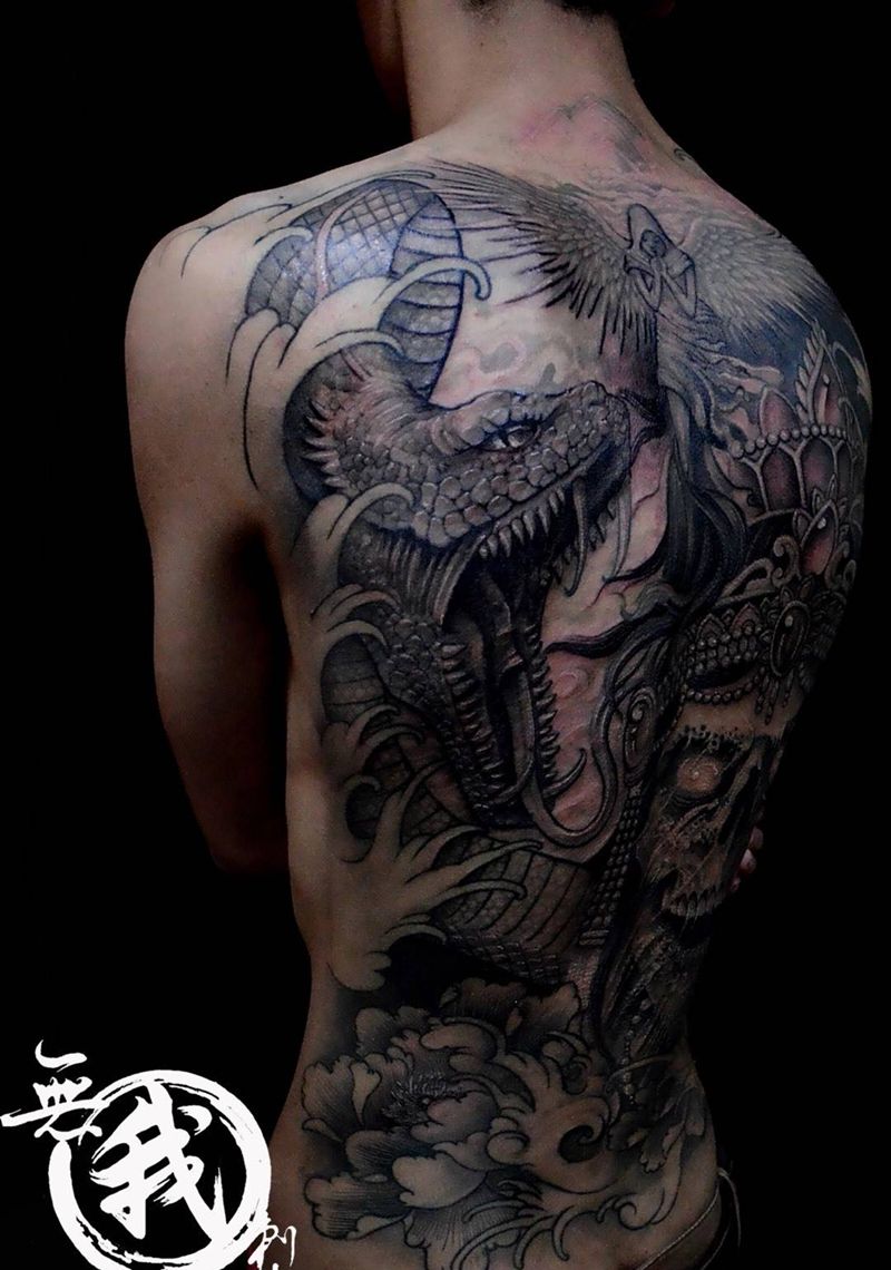 当前位置: 首页 >广东省广州市纹身店-广州纹身無我刺青tattoo纹身图案>添加满背纹身图片_成品手稿欧美鬼神原创纹身图案