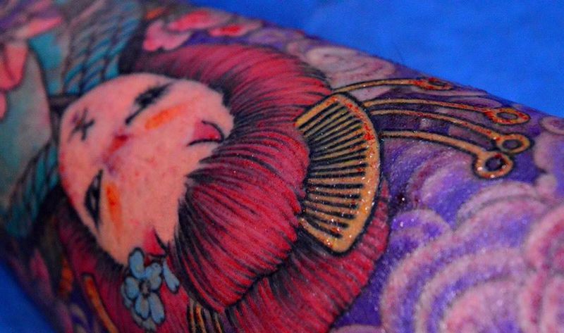 彩色作品纹身图片_脚部腿部成品纹身图案