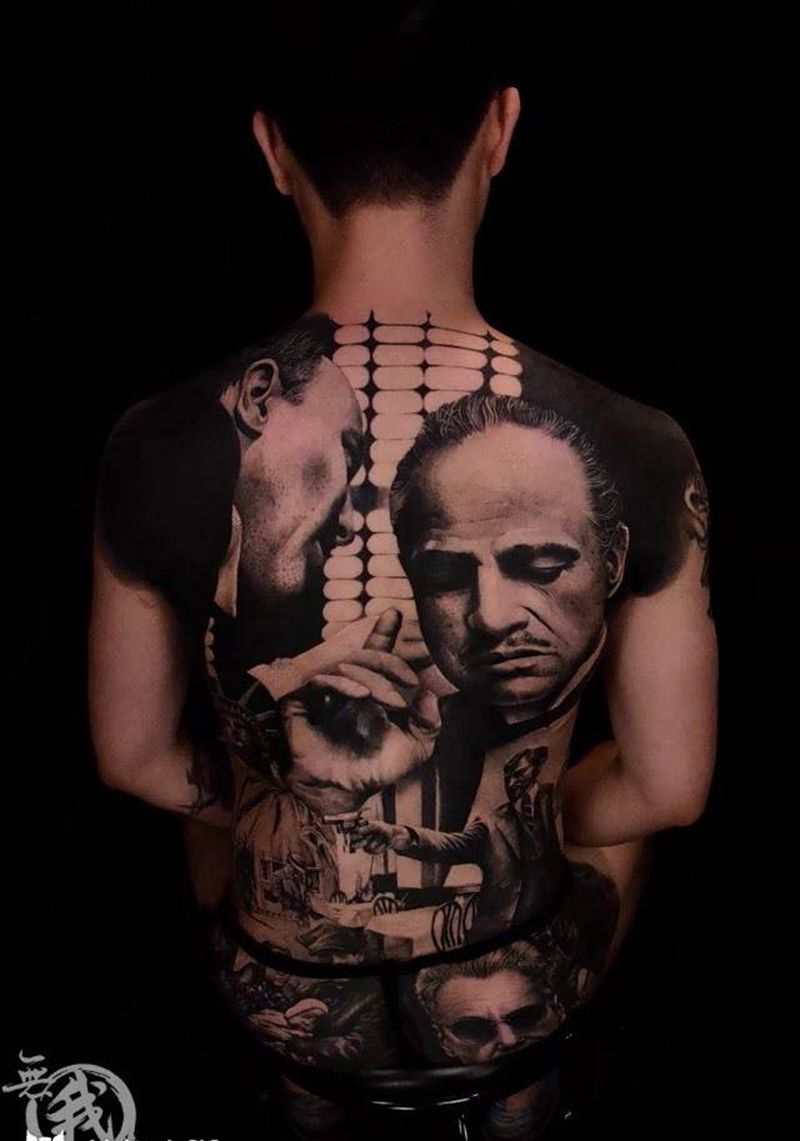 当前位置: 首页 >广东省广州市纹身店-广州纹身無我刺青tattoo纹身图案>教父纹身图片_成品手稿肩部臀部腰部背部欧美肖像写实人物纹身图案