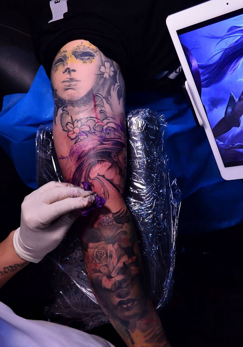 当前位置: 首页 >广东省广州市纹身店-广州纹身無我刺青tattoo纹身图案>欧美花臂纹身图片_成品手稿手臂欧美写实肖像清新人物原创字符纹身图案