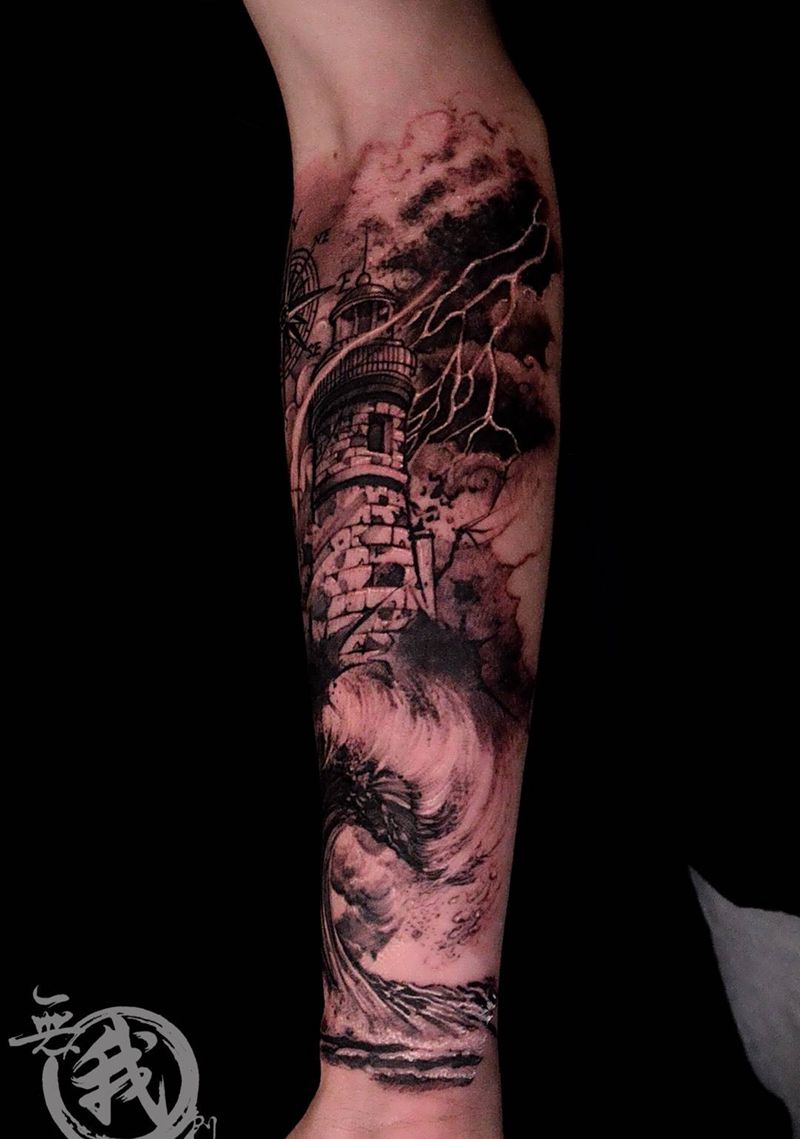 当前位置: 首页 >广东省广州市纹身店-广州纹身無我刺青tattoo纹身图案>灯塔纹身图片_成品手稿插画手部手臂欧美清新写实纹身图案