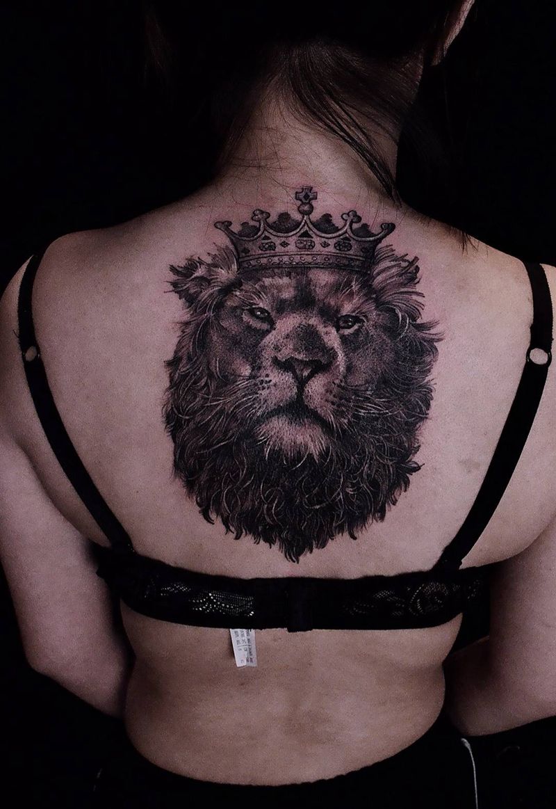 狮子纹身图片_成品手稿背部欧美写实肖像清新原创动物纹身图案