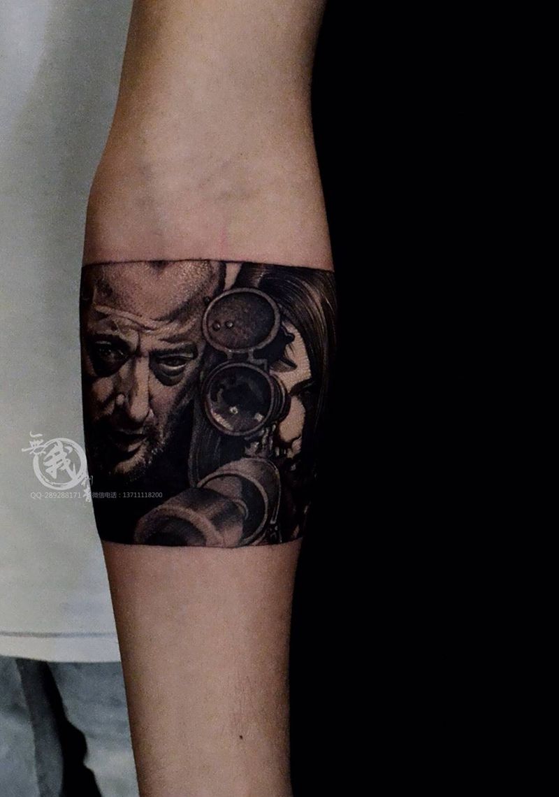 杀手不太冷纹身图片_成品手稿手臂欧美写实肖像人物原创纹身图案