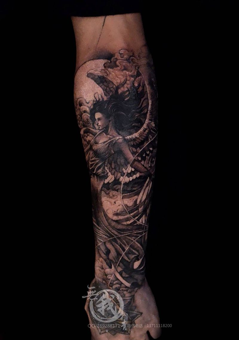 当前位置: 首页 >广东省广州市纹身店-广州纹身無我刺青tattoo纹身图案>天使纹身图片_成品手稿手部手臂欧美写实人物原创鬼神宗教纹身图案