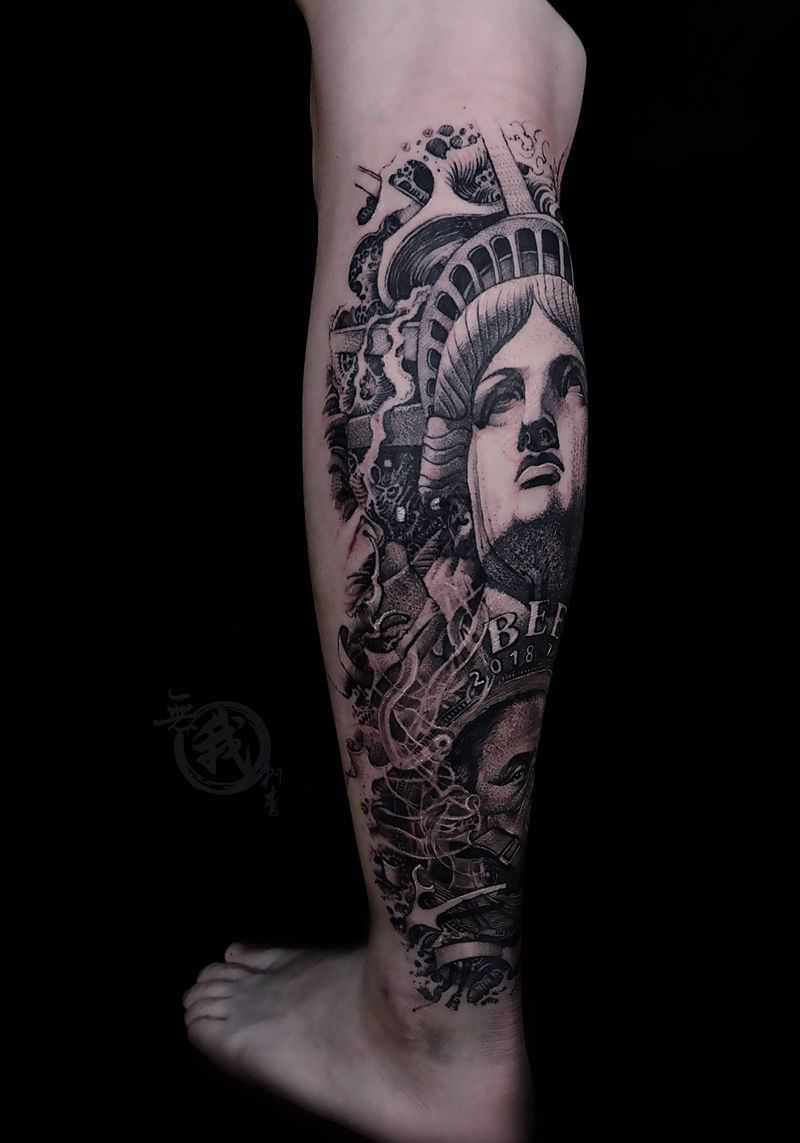 当前位置: 首页 >广东省广州市纹身店-广州纹身無我刺青tattoo纹身图案>欧美作品纹身图片_腿部脚部欧美写实花体字纹身图案