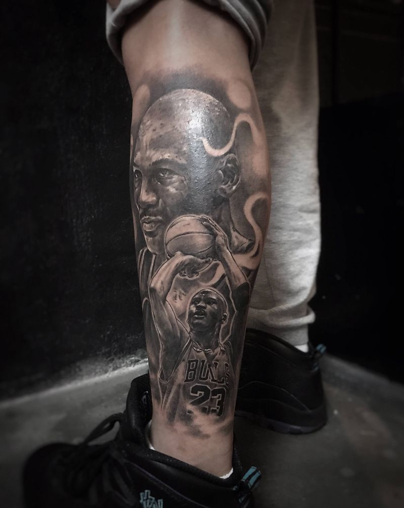 Jordon纹身图片_腿部欧美写实乔丹篮球纹身图案