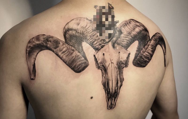 当前位置: 首页 >广东省广州市纹身店-框刺青纹身图案>添加纹身 羊骷髅纹身图片_背部欧美写实羊骷髅纹身图案
