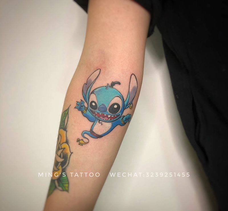 当前位置: 首页 >广东省广州市纹身店-框刺青纹身图案>灯神史迪仔纹身图片_手臂New School史迪仔纹身图案