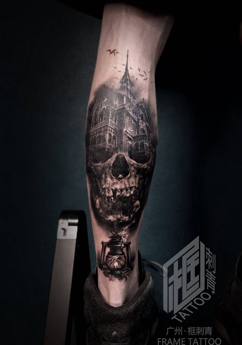 当前位置: 首页 >广东省广州市纹身店-框刺青纹身图案>骷髅纹身图片_腿部欧美写实骷髅纹身图案