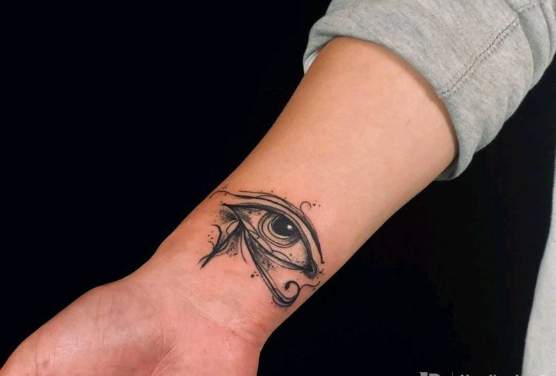 • 手背潮流时尚的玫瑰花眼睛纹身图案