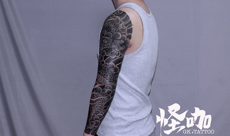 • T网红王老大花腿龙纹身图片_腿部新传统纹身图案