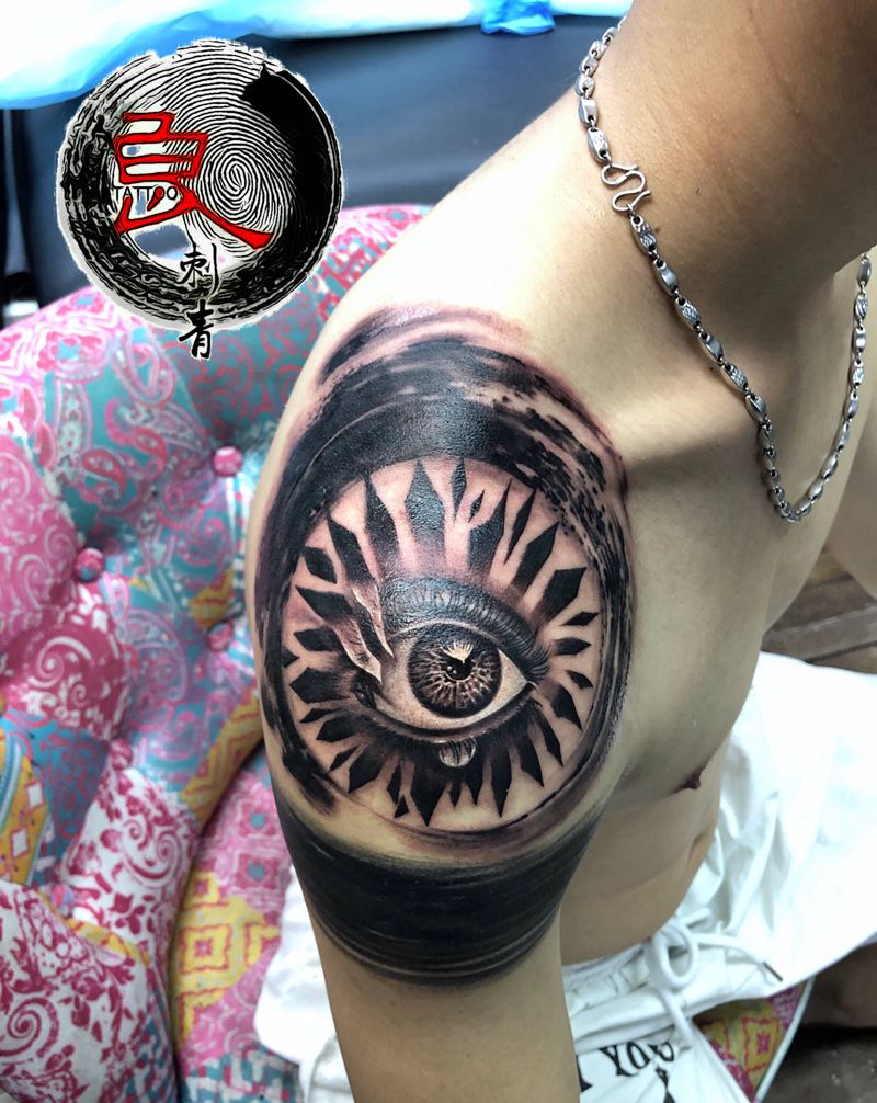 眼睛遮盖纹身图片_手臂欧美写实纹身图案