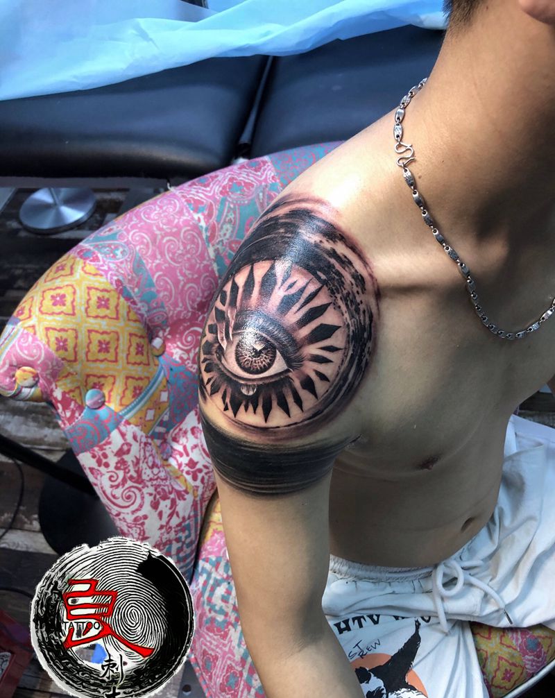 眼睛遮盖纹身图片_手臂欧美写实纹身图案