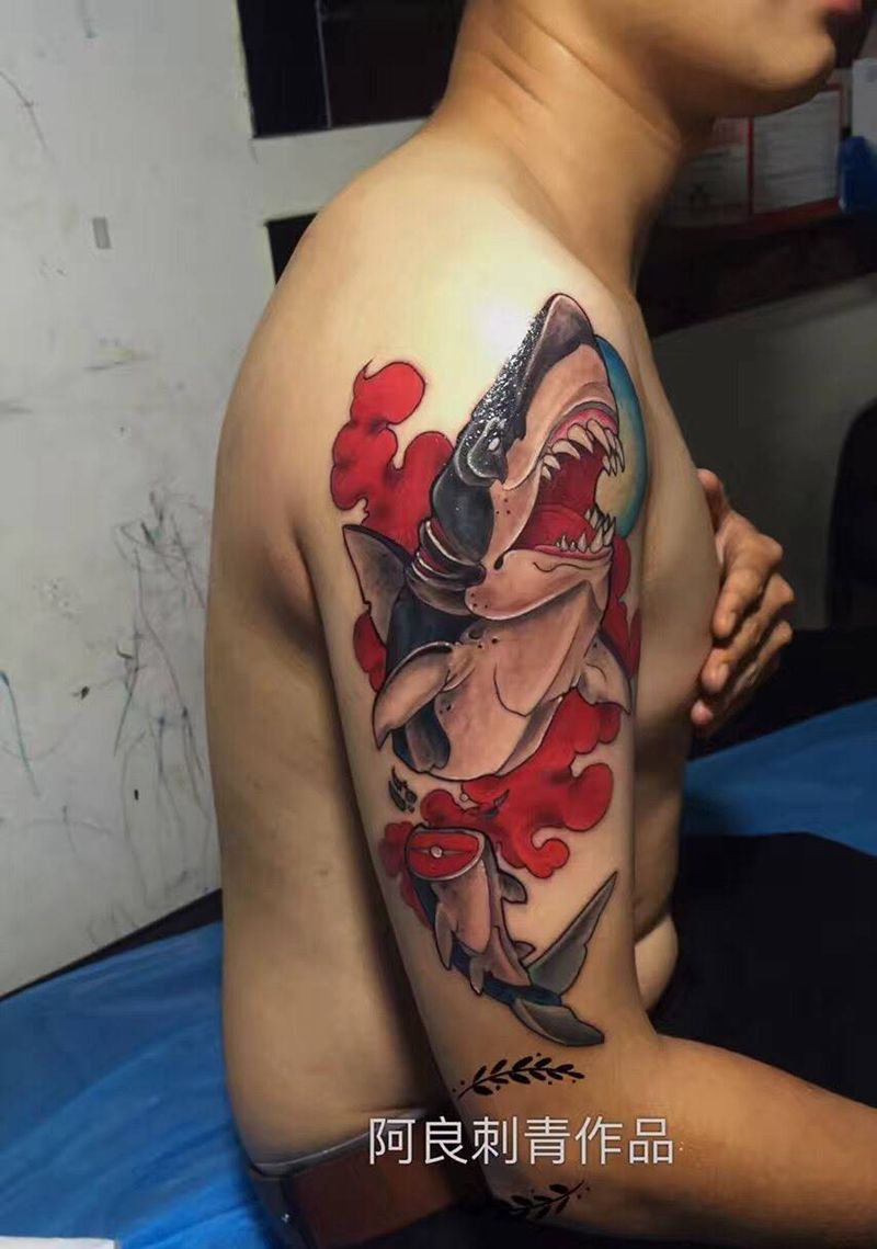 当前位置: 首页 >广东省广州市纹身店-良刺青纹身图案>大鲨鱼。纹身图片_欧美动物手臂纹身图案