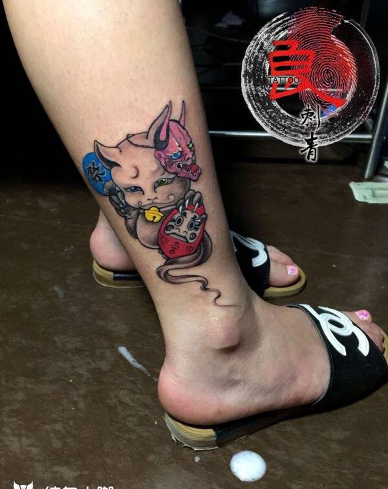 • T网红王老大花腿龙纹身图片_腿部新传统纹身图案