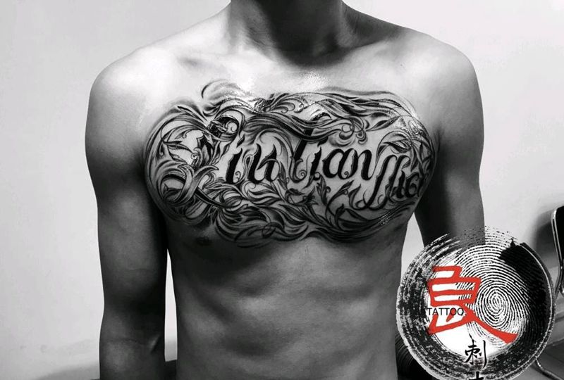 花胸纹身图片_胸部欧美字符原创成品纹身图案