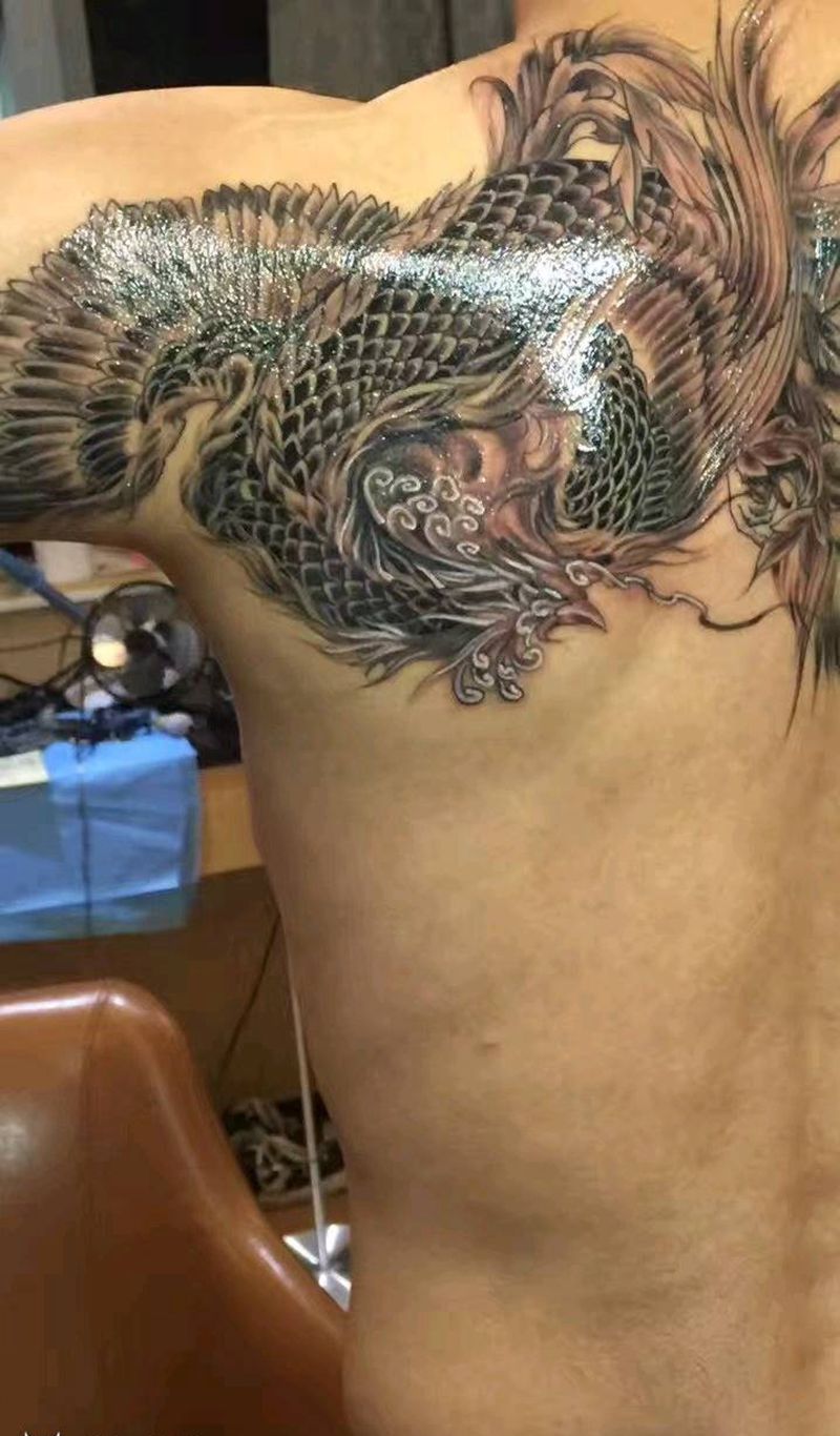 凤凰纹身图片_肩部传统成品纹身图案