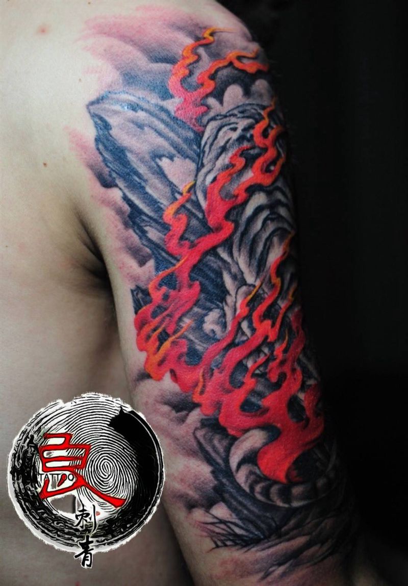 当前位置: 首页 >广东省广州市纹身店-良刺青纹身图案>火焰 老虎纹身图片_成品肩部传统动物纹身图案