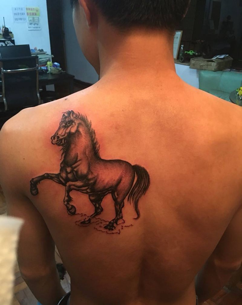 当前位置: 首页 >广东省广州市纹身店-永恒刺艺艺术纹身纹身图案>马纹身图片_成品肩部国画动物纹身图案