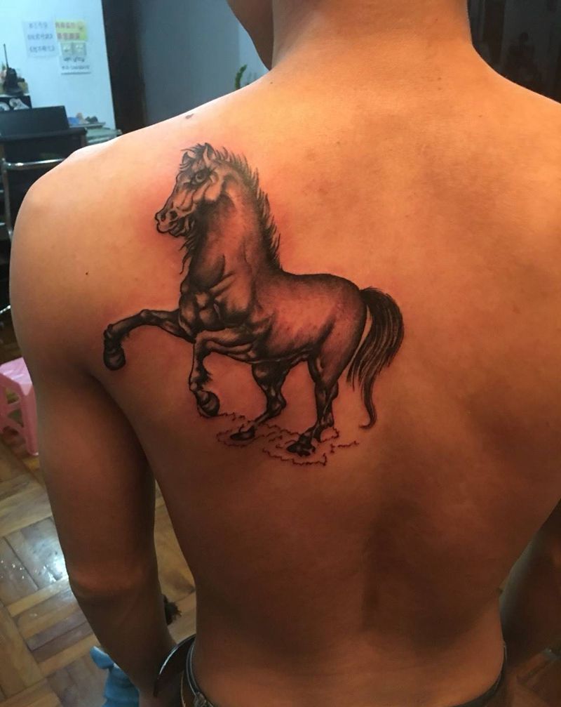 当前位置: 首页 >广东省广州市纹身店-永恒刺艺艺术纹身纹身图案>马纹身图片_成品肩部国画动物纹身图案