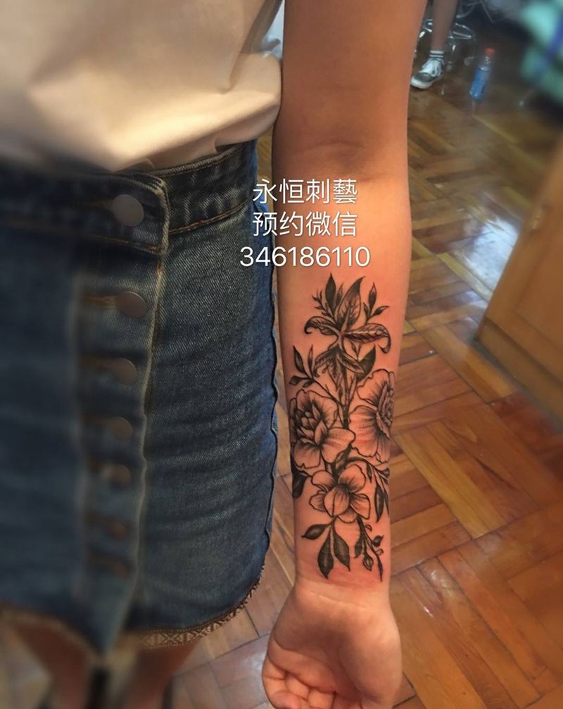 当前位置: 首页 >广东省广州市纹身店-永恒刺艺艺术纹身纹身图案>花纹身图片_成品手臂清新植物纹身图案