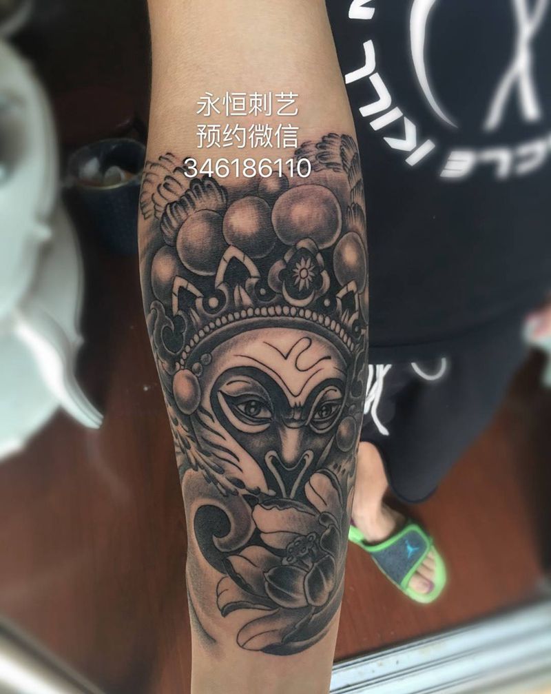 当前位置: 首页 >广东省广州市纹身店-永恒刺艺艺术纹身纹身图案>京剧艺术纹身图片_成品手臂人物纹身图案