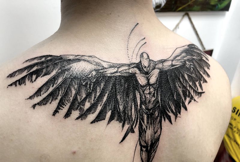 黑天使 做的第二个纹身图片_肩部背部纹身图案