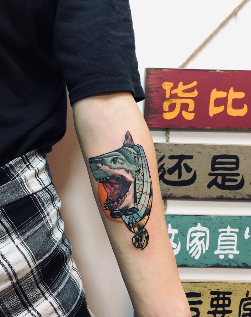 当前位置: 首页 >广东省广州市纹身店-框刺青纹身图案>newschool shark纹身图片_手臂New School纹身图案