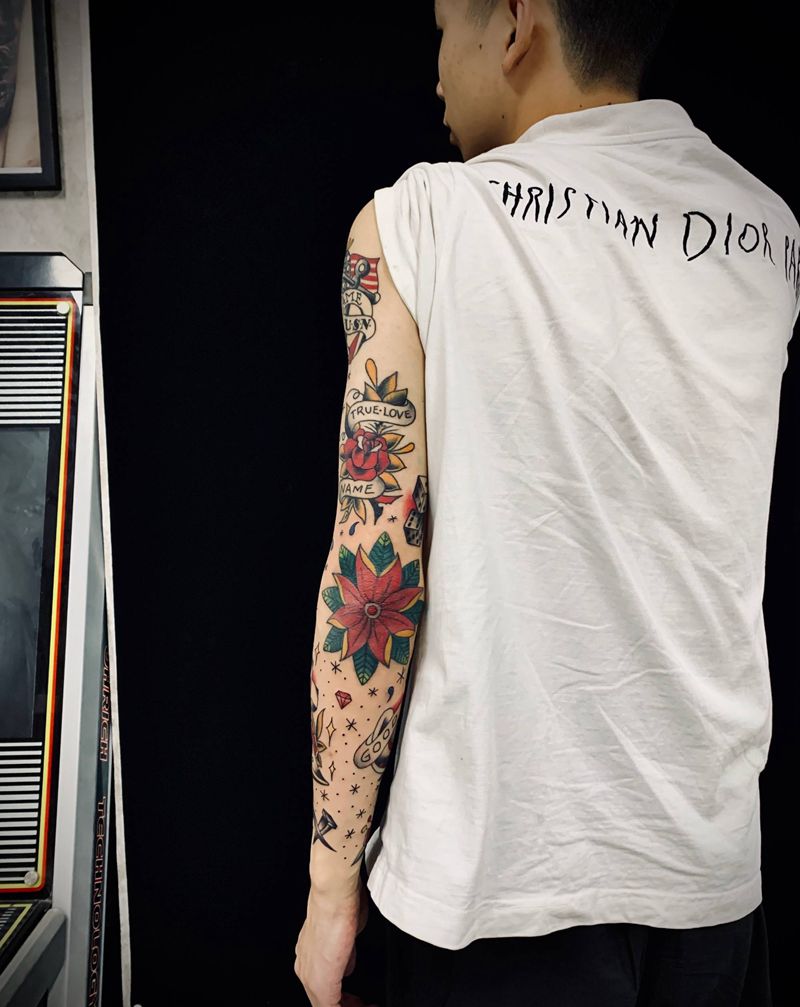 当前位置: 首页 >广东省广州市纹身店-框刺青纹身图案>特价 old school花臂纹身图片_手臂Old School纹身图案