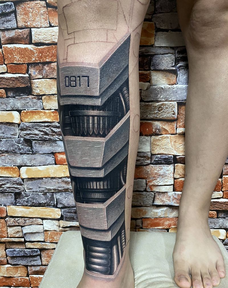 当前位置: 首页 >广东省广州市纹身店-彬刺青纹身图案>【机械腿-钢骨】未完成纹身图片_脚部腿部欧美写实机械机械腿纹身图案