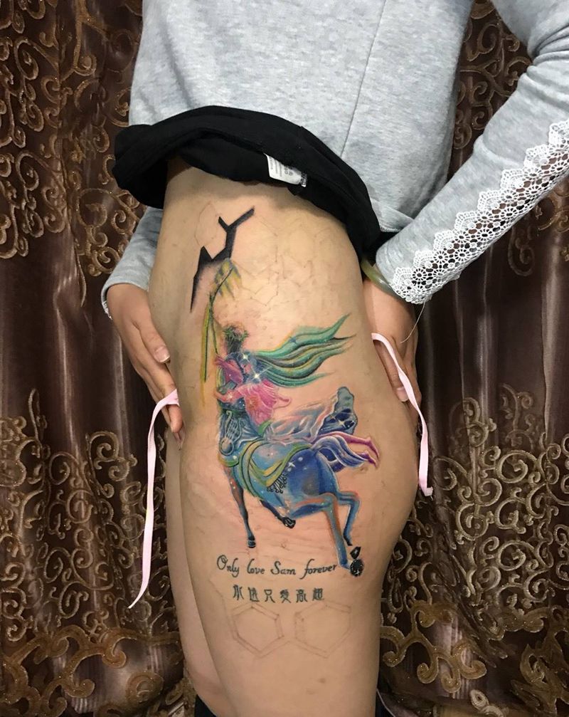 星空射手纹身图片_插画臀部腰部腿部欧美写实原创纹身图案