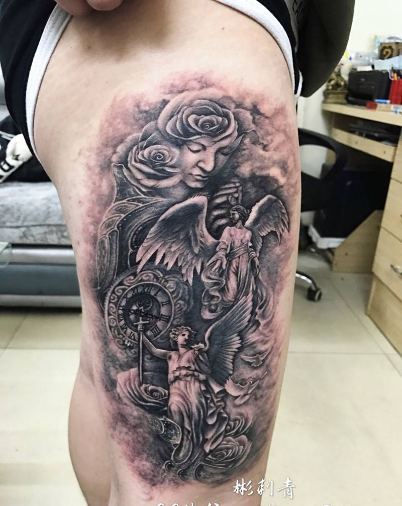 当前位置: 首页 >广东省广州市纹身店-彬刺青纹身图案>欧美风纹身图片_成品腿部欧美写实纹身图案