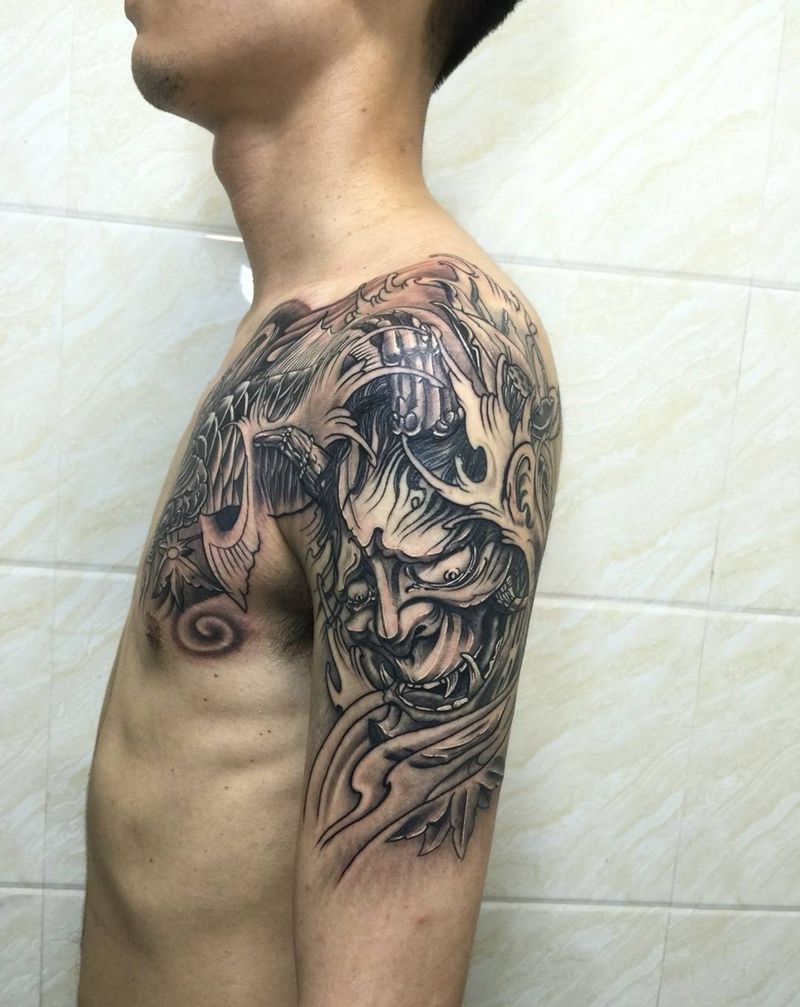 般若鲤鱼纹身图片_成品胸部手臂肩部传统鬼神纹身图案