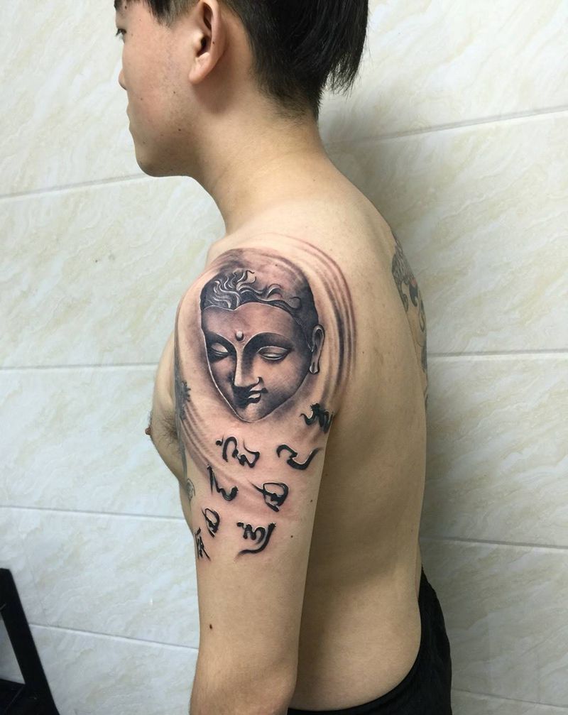 佛纹身图片_成品手臂传统人物鬼神纹身图案