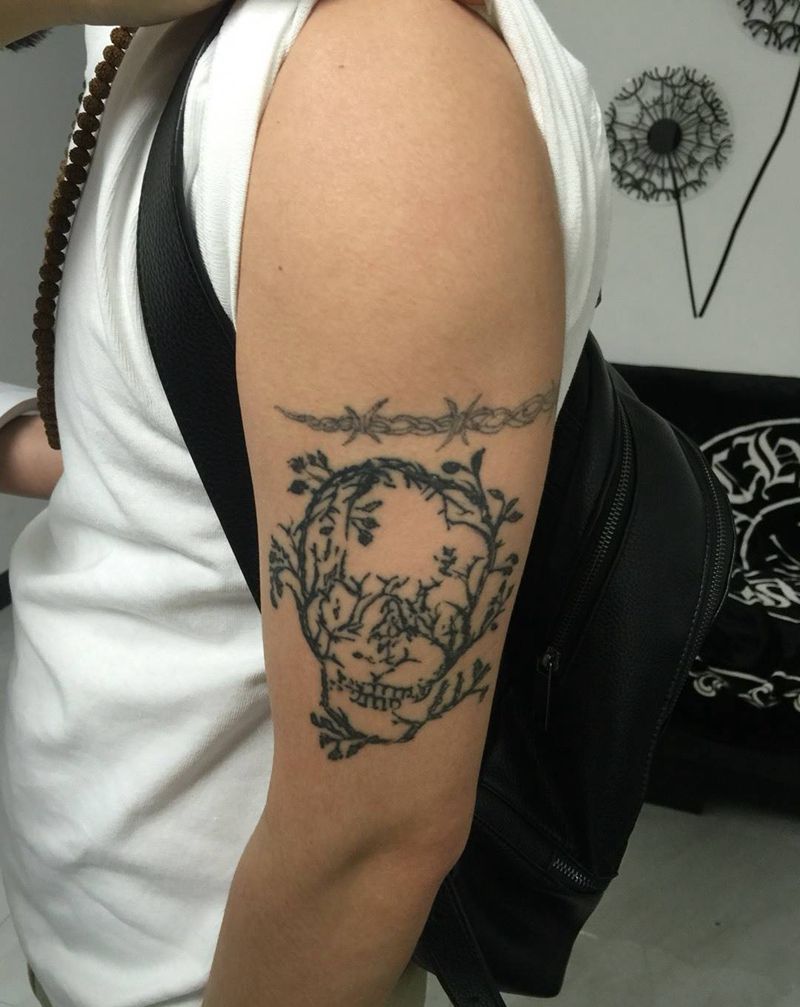 山水、修改旧图纹身图片_成品手臂国画植物纹身图案