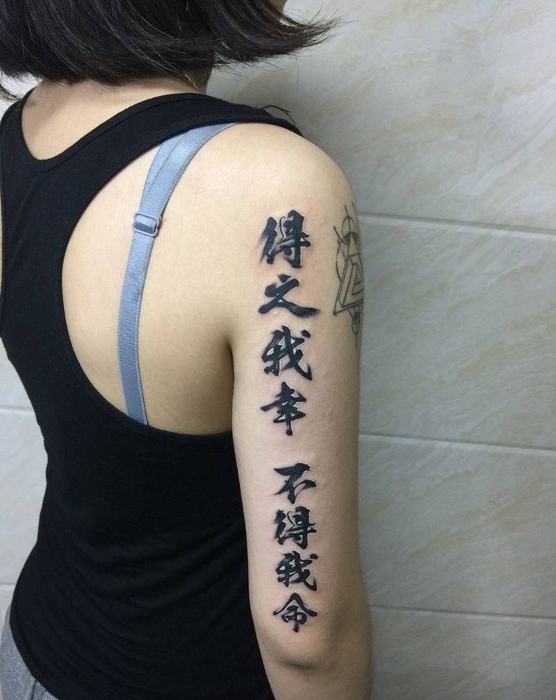 当前位置: 首页 >广东省广州市纹身店-Victims of ink纹身图案>毛笔书法纹身图片_成品手臂传统字符纹身图案