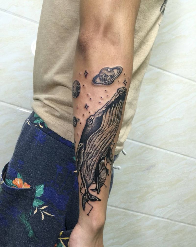 大鲸小鲸纹身图片_成品手臂动物原创纹身图案