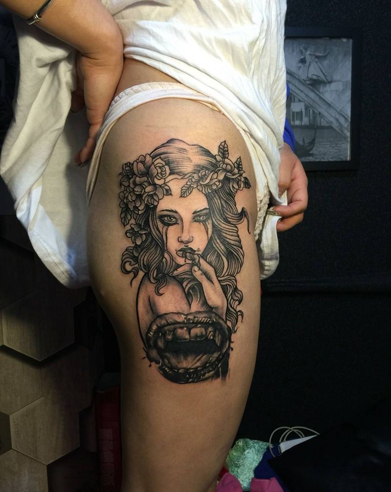 oldschooltattoo纹身图片_成品腿部欧美人物纹身图案