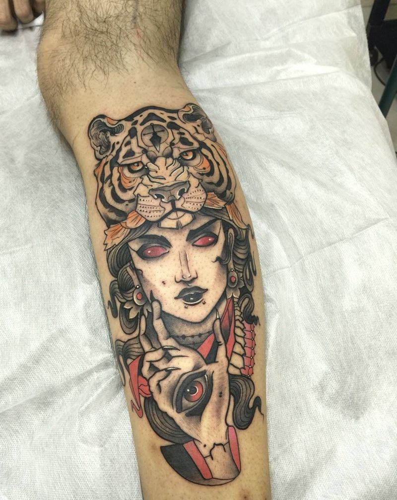 欧美风纹身图片_成品腿部欧美人物纹身图案