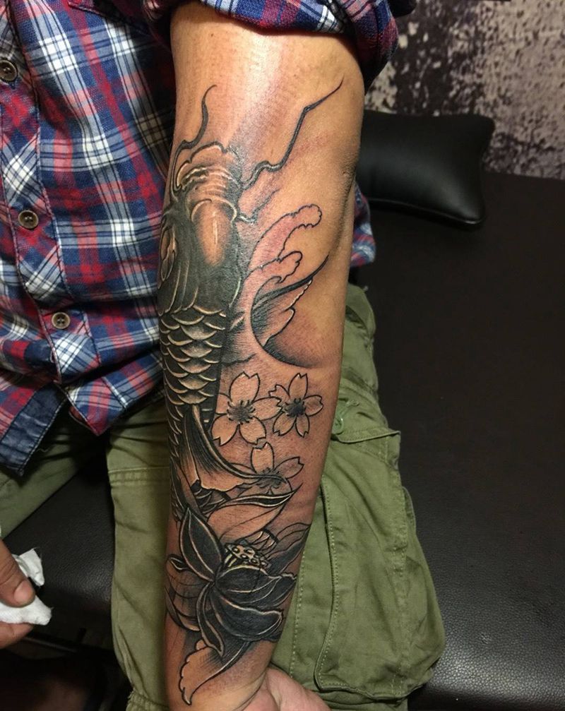鲤鱼纹身图片_成品手臂传统动物原创纹身图案