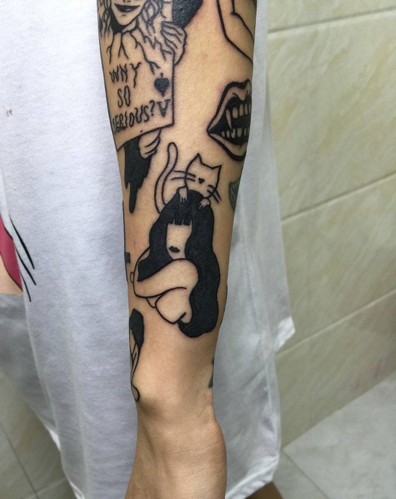 当前位置: 首页 >广东省广州市纹身店-Victims of ink纹身图案>恶趣小图纹身图片_成品手臂欧美人物纹身图案