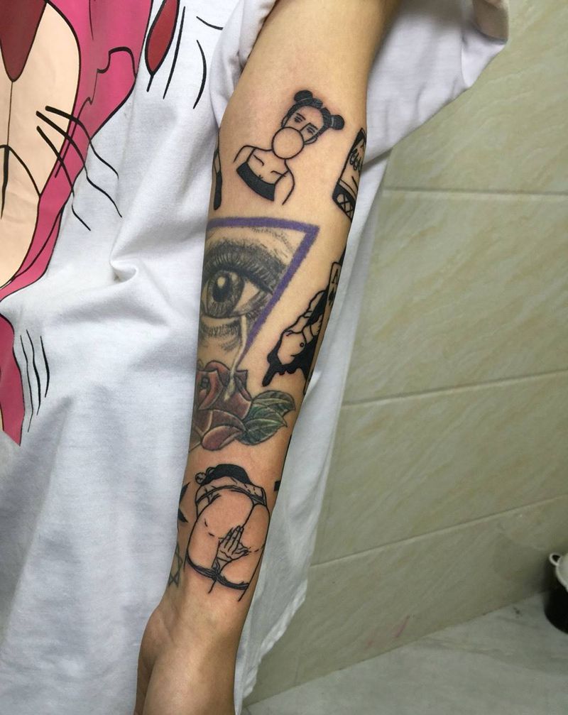 恶趣小图纹身图片_成品手臂欧美人物纹身图案