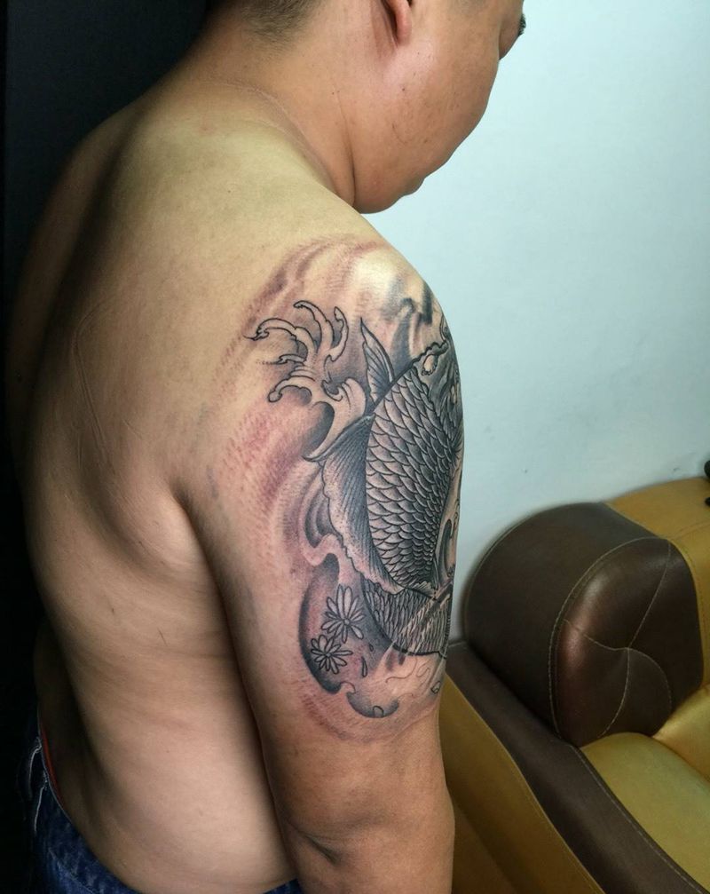 传统鲤鱼、遮盖旧图纹身图片_成品手臂传统动物纹身图案