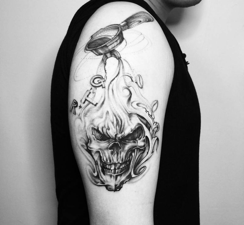 骷髅纹身图片_原创鬼神手臂纹身图案