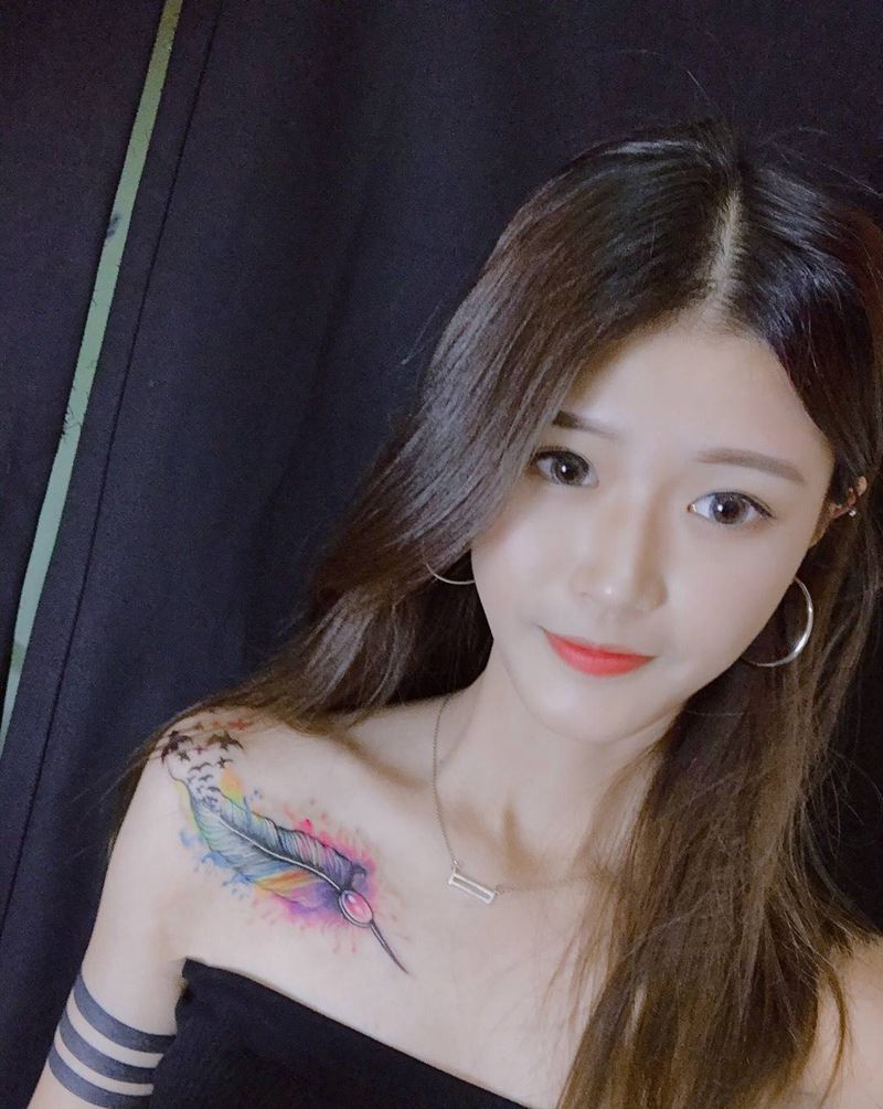 英文遮盖/羽毛纹身图片_成品胸部清新静物原创纹身图案