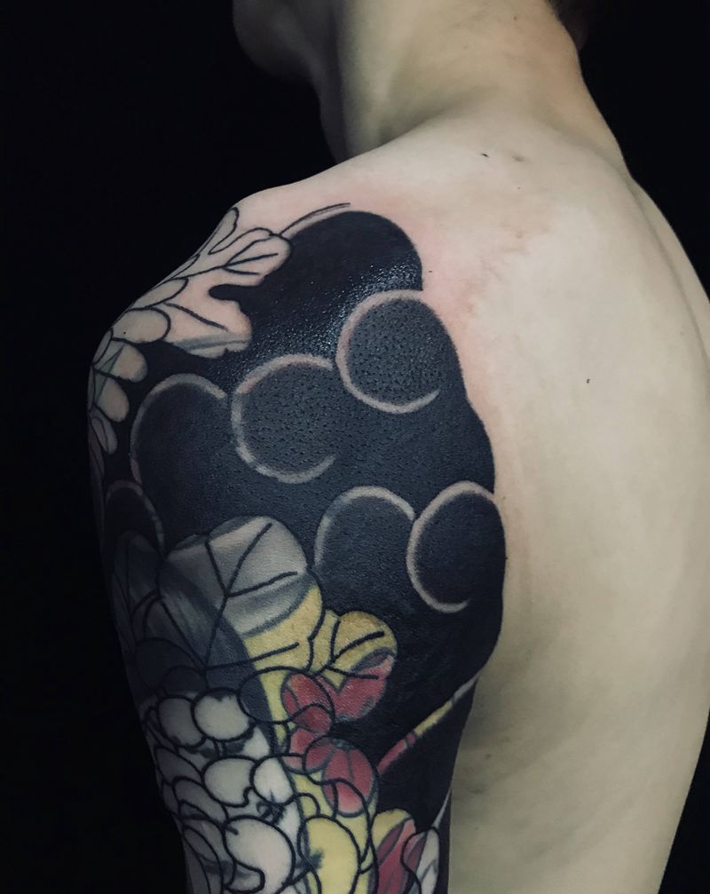 当前位置: 首页 >广东省广州市纹身店-墨刺青纹身图案>菊花遮盖纹身图片_手臂手部老传统纹身图案