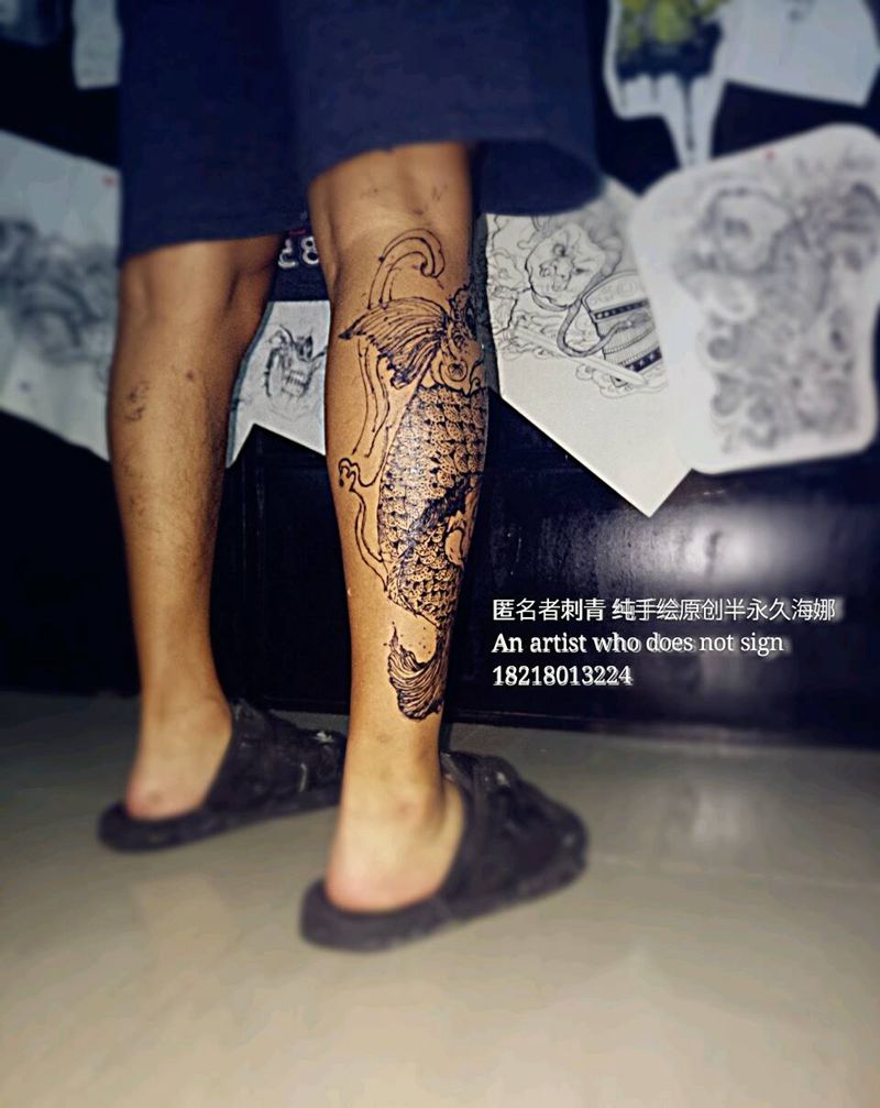当前位置: 首页 >广东省广州市纹身店-广州匿名者刺青纹身图案>招财鲤鱼纹身图片_腿部传统动物原创艺术黑灰海娜成品纹身图案