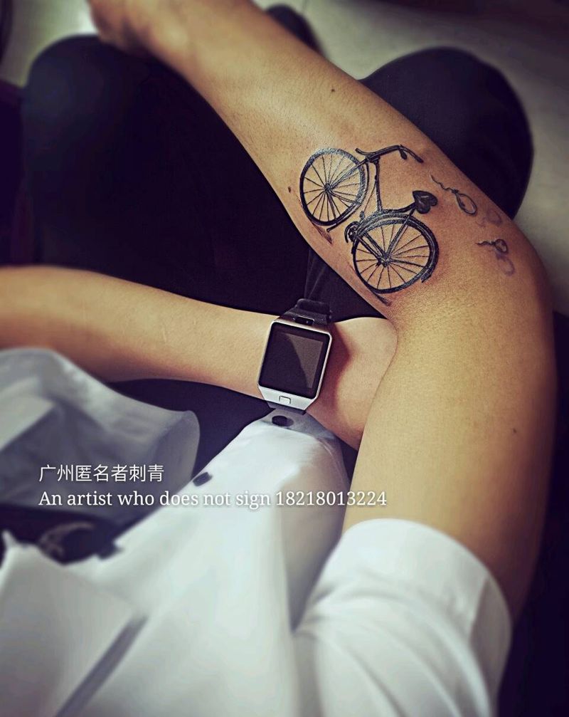 当前位置: 首页 >广东省广州市纹身店-广州匿名者刺青纹身图案>清新 写实 自行车纹身图片_手臂清新写实几何静物成品插画纹身图案